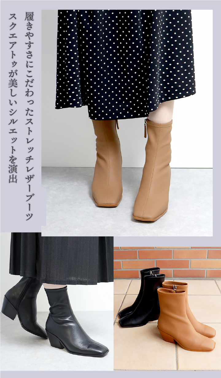 ストレッチレザーサイドジップブーツ