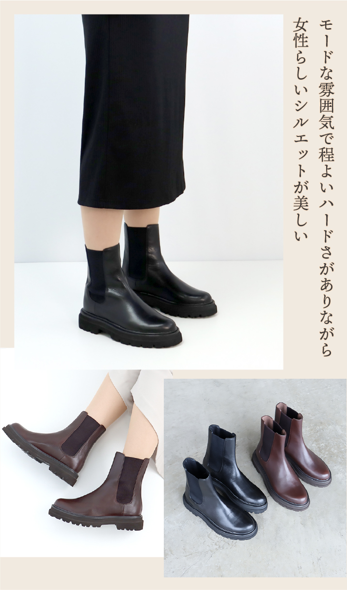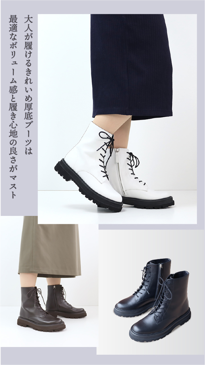 程よいアクセントを。素材と履きやすさにこだわった大人が履けるキレイめ厚底ブーツ。